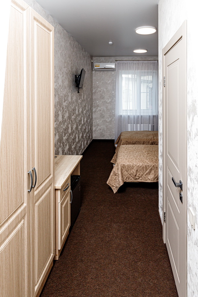 Вас ждут две уютные односпальные кровати с мягким постельным бельем, гардероб для удобного хранения вещей, телевизор для развлечения, кондиционер для создания комфортной температуры в помещении. На случай работы или общения в сети предоставлен бесплатный доступ к wi-fi. Для хранения свежих продуктов или напитков в вашем распоряжении мини-холодильник.