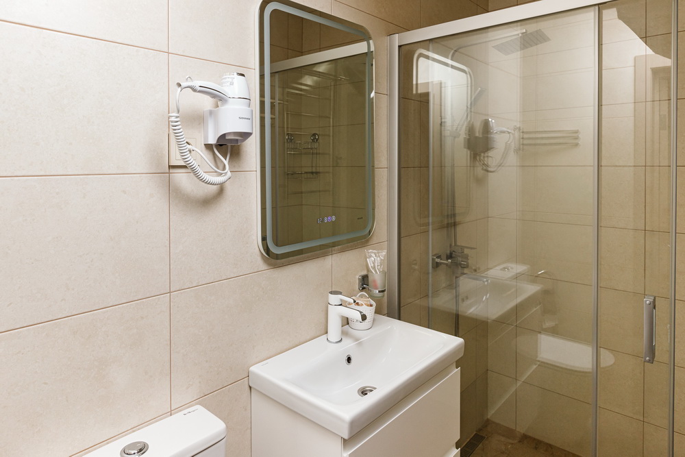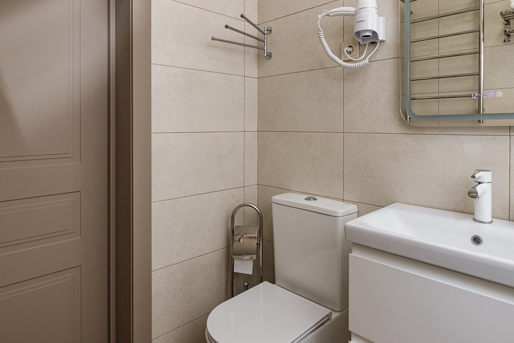 Дополнительные удобства включают два банных комплекта, включающих халаты, тапочки и мягкие полотенца. Все это создано для того, чтобы ваше пребывание было максимально комфортным и приятным.